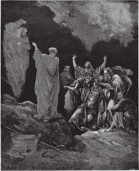 Когда Саул изнемогал в борьбе,Так велика была его страданий сила,Что тень пророка СамуилаИз смертной тьмы он мог призвать к себе.Как некий бог, в волнах дрожащих дыма,Усопший перед ним предстал…И царь в тоске затрепетал,Узнав, что смерть неотвратима…Саул