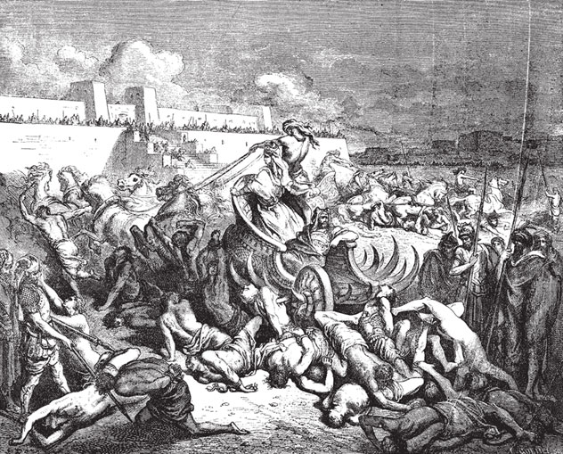 ИЗБИЕНИЕ АММОНИТЯН. ВТОРАЯ КНИГА ЦАРСТВ, ГЛ. 12, СТ. 31. А народ, бывший в нем, он вывел и положил их под пилы, под железные молотилки, под железные топоры, и бросил их в обжигательные печи.