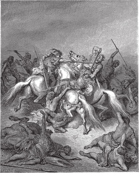 АВЕССА СПАСАЕТ ДАВИДА. ВТОРАЯ КНИГА ЦАРСТВ, ГЛ. 21, СТ. 16–17. Тогда Иесвий… хотел поразить Давида. Но ему помог Авесса, сын Саруин, [и спас Давида Авесса] и поразил Филистимлянина, и умертвил его.