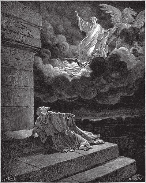 Настали времена, когда свершиться чуду.Пришел на Иордан с учеником Илья,И молвил Елисей: «Везде с тобой пребуду, –Жив Бог, жива душа твоя».Илья же, сняв милоть, ударил ею волныИ, рассекая их, прошел по дну реки,И это видели, благоговенья полны,Стоявшие вдали ученики.Пришедши на берег, он молвил Елисею:«Чего желаешь ты, о том поведай мне».Ответил ученик: «Твоею властью всеюТы одари меня вдвойне!»Илья сказал ему: «У Бога просишь много,Но, если взятие мое увидишь ты,Получишь в тот же час просимое от Бога».И только он сказал – над ними с высоты,Прорезав небеса, как яркая зарница,И мчась быстрей, чем легкая стрела,Вся в блеске огненном, явилась колесницаИ, словно вихрь, пророка унесла.И вдохновенными, но скорбными очамиБезмолвно созерцал сияющий полетПреемник Илии – от пламенных высотОчей не отводя, подернутых слезами.