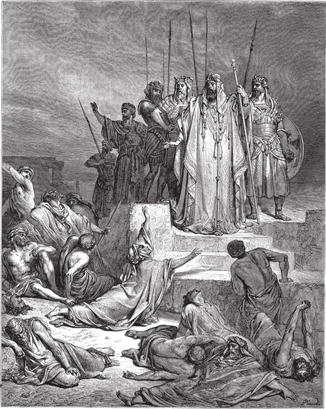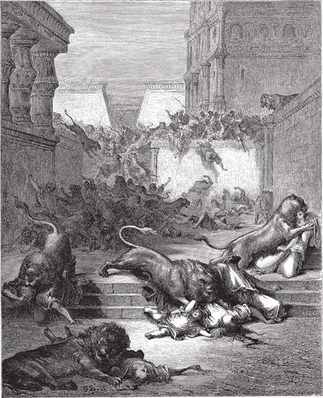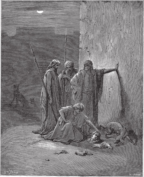 Увесть ее и поразить мечамиТам, во дворе! Да не прольется в храмеПреступницы неправедная кровь.И если бы, вооружася, вновьЯзычники восстали для защиты –Да поразят их, вместе с ней, левиты!..Львы истребляют пришельцев в Самарии