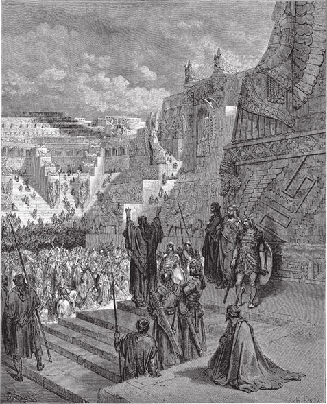 Воздвигнул Вседержитель царя великий дух,К мольбам Иеремии он преклоняет слухИ шлет указ: «Внимайте!Я – царь персидский Кир,Кому подвластны земли, кому подвластен мир, –Я слышал голос Бога, и повелел Он СамМне в Иерусалиме Ему построить храм.Спешите, иудеи, и каждый от щедротПусть Господу даянье посильное несетИ, рвением к святыне и Господу палим,Свободно возвратится в родной Ерусалим!»И жертвовали люди от своего добра:И золота, и тканей, коней и серебра.Рукою Митридата, хранителя казны,Царем обратно были тогда возвращеныСвященные сосуды, у Божьих алтарейБлиставшие когда-то сиянием огнейИ взятые из храма задолго до того.А было их пять тысяч четыреста всего.И принял князь Иудин великолепный дар,Отвез его в отчизну свою Самонасар,И много иудеев вернулись вместе с нимНа построенье храма в родной Ерусалим.