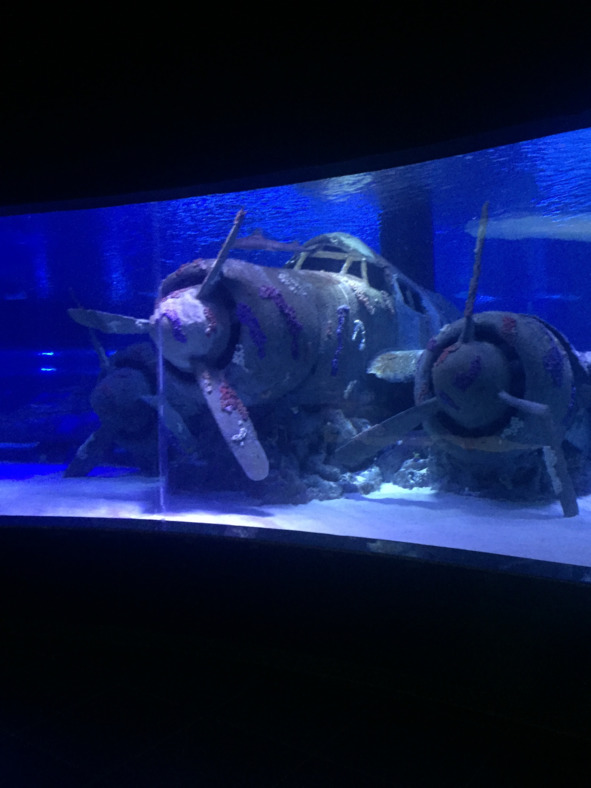 Однако главной секцией данного здания все равно остаётся океанариум. Он впечатляет своими размерами и задумкой. Здесь представлены целые экспозиции. Например, затонувший самолёт (причём настоящий), или корабль, ушедший на дно. Создаётся ощущение, будто ты на самом деле находишься в бездне морской и смотришь на проплывающих мимо рыбок, а иногда и акул. Именно это выделяет Antalya Aquarium от остальных океанариумов, что я видел, и поэтому его обязательно следует посетить.