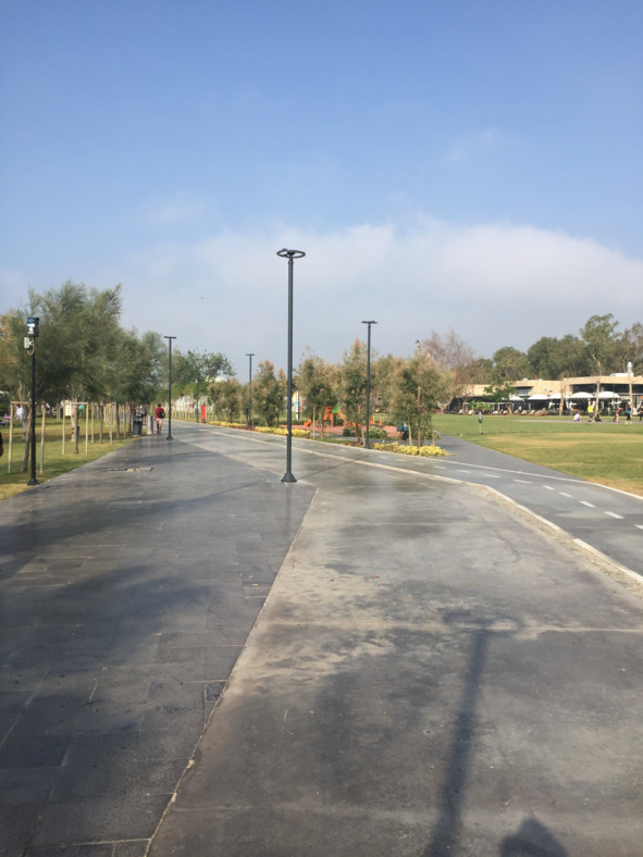 Парк сделан скорее для местных жителей, чем для туристов. Он находится в стороне от основных пешеходных потоков, поэтому иностранцы сюда особо не забредают. За все время моего пребывания здесь мне встретился только один турист, в основном же здесь отдыхают сами горожане. Хотя, возможно, я был просто не в той части парка, где происходит основное скопление туристов. Ведь здесь есть территория, посвящённая кинематографу, а также собственный пляж. Также в парке можно увидеть две пирамиды. Первая является выставочным центром, вторая – стилизованным кафе. Одну из них мне посчастливилось увидеть.