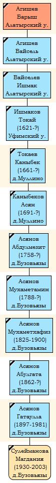 10/7. Надырша Асянов (1735-?). Мещеряк д. Муллино. В середине XVIII века переселился в д. Бузовьязы.