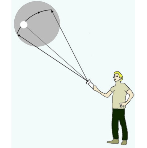 Но это не значит, что вообще не существует скоростей, больших скорости света. Например, если посветить фонариком на Луну, быстро смещая руку, то свет фонарика пробежит по поверхности Луны со скоростью, большей, чем скорость света. Противоречия со сказанным выше здесь нет, потому что граница светового пятна – это не материальное тело. Наблюдатель на одной стороне лунного диска не сможет передать сверхсветовое сообщение наблюдателю на другой стороне диска с помощью земного фонарика, т.к. он сначала должен передать нам на Землю указание о том, что мы должны делать с лучом фонарика, а это сообщение будет двигаться со скоростью света, и в итоге скорость передачи сообщений с одного края Луны на другой не превысит скорости света.