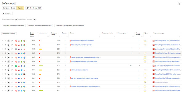 Для тщательного анализа поведения пользователей на сайте, воспользуйтесь картой кликов/скроллинга/ссылок и вебвизором. Вебвизор так и вовсе работает как скрытая камера, «подглядывая» и записывая действия каждого конкретного пользователя на видео.