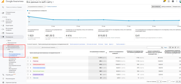 Теперь, если вам кажется, что какой-то канал не приносит прямых конверсий, то прежде, чем принимать решение об исключении этого канала, проверьте, насколько большой вклад он вносит в ассоциированные конверсии и исходя из этой информации анализируйте результат.