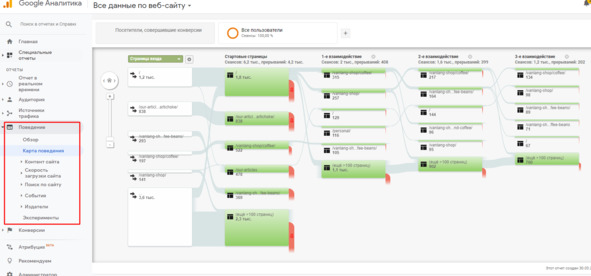 Блок отчетов «Поведение» может показать, какой путь пользователи совершают чаще всего и с помощью сегментации узнать, какой путь наиболее популярный по сайту, который завершается конверсией.