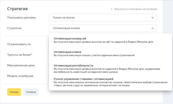 Для текстово-графических кампаний в Яндексе есть возможность настроить стратегии. И например, для привлечения клиентов, которые пока не готовы купить, подойдет стратегия оптимизации кликов, а для тех, кто спустился ниже по воронке и выбирает товар, можно настроить оптимизацию конверсий. Что тоже увеличит итоговую конверсию.