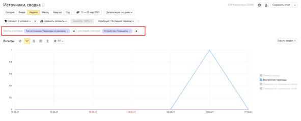 Так же используйте «плюсики» (уточнения по типу «визиты, в которых»), так как Яндекс Метрика, позволяет смотреть по узким сегментам, ВАЖНО настраивать отчеты по дополнительным условиям, например, только клиентов, пришедших с рекламы.