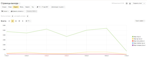 Допустим, вы видите, что одна и та же страница является страницей входа и выхода, в таком случае, необходимо поработать над ее перелинковкой.