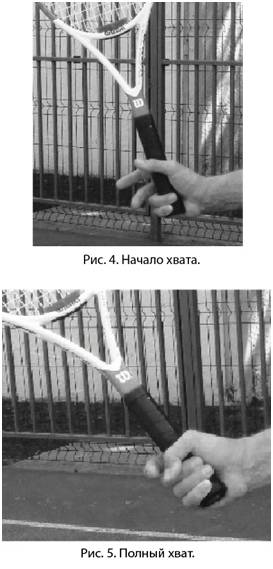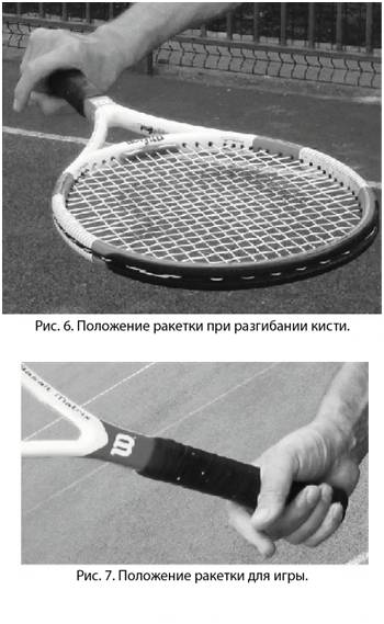 С помощью рисунков 4, 5, 6, 7 легче понять как нужно, и главное как правильно, сформировать физиологически обоснованный хват ракетки.