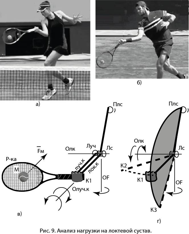 С лучезапястным суставом определились, теперь рассмотрим, как различные хватки ракетки помогают или напротив не очень помогают сохранить здоровье локтевого сустава (рис. 9).