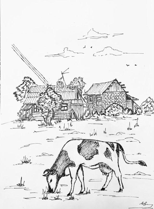 – Странно, а почему корова такая смирная? – тихо спросила Ирка, – даже не брыкается. – Корова стояла спокойно, переступая с ноги на ногу, флегматично пережевывала травяную жвачку, и вдруг повернула рогатую голову и посмотрела на Ирку масляным взглядом, помахала хвостом. – И что, от одной коровы целое ведро молока? – удивилась Ирка. – Невероятно!