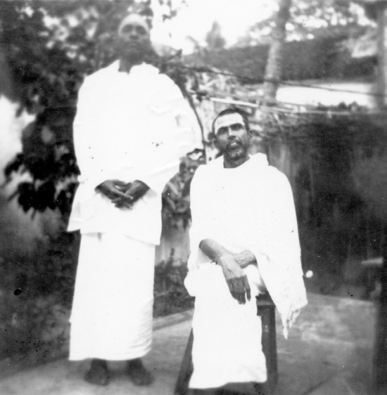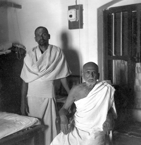 Муруганар (сидит) с Раманападанандой, преданным, который при жизни Бхагавана издавал все его книги