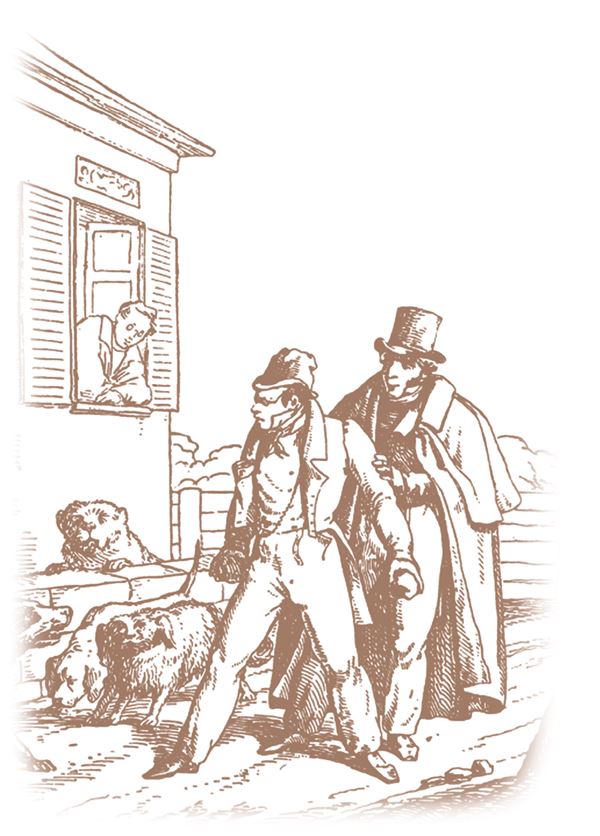 «Прохожие и Собаки». Рисунок А. Сапожникова. 1834