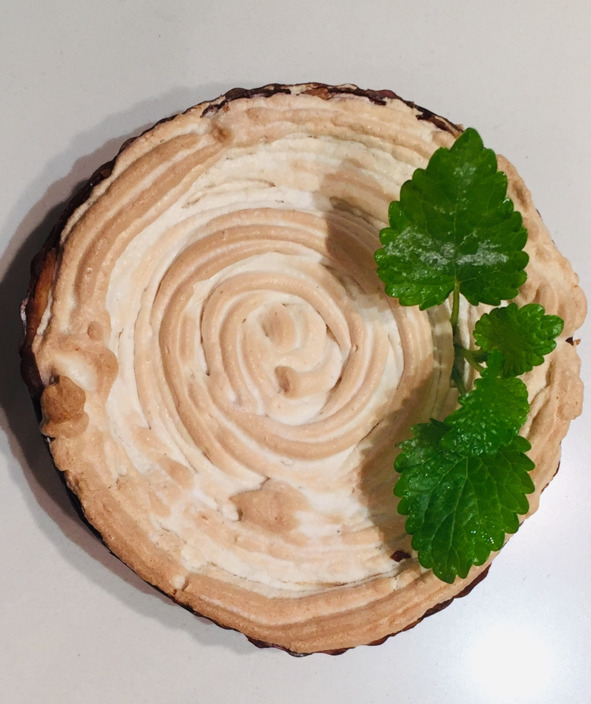 Сверху украсить с помощью пекарского мешка белковым кремом и отправить в духовку, разогретую до 220 градусов, на 3 минуты.