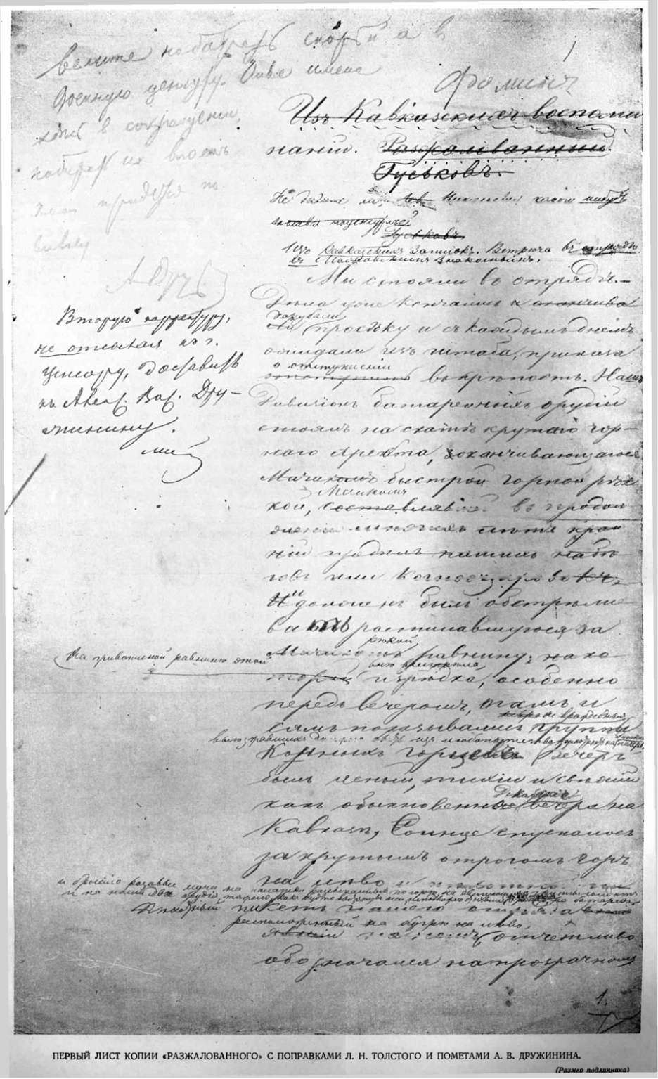 (1853—1856)Мы стояли в отряде. – Дела уже кончались, дорубали просеку и с каждым днем ожидали из штаба приказа об отступлении в крепость. Наш дивизион батарейных орудий стоял на скате крутого горного хребта, оканчивающегося быстрой горной речкой Мечиком, и должен был обстреливать расстилавшуюся впереди равнину. На живописной равнине этой, вне выстрела, изредка, особенно перед вечером, там и сям показывались невраждебные группы конных горцев, выезжавших из любопытства посмотреть на русский лагерь. Вечер был ясный, тихий и свежий, как обыкновенно декабрьские вечера на Кавказе, солнце спускалось за крутым отрогом гор налево и бросало розовые лучи на палатки, рассыпанные по горе, на движущиеся группы солдат и на наши два орудия, тяжело, как будто вытянув шеи, неподвижно стоявшие в двух шагах от нас на земляной батарее. Пехотный пикет, расположенный на бугре налево, отчетливо обозначался на прозрачном свете заката, с своими козлами ружей, фигурой часового, группой солдат и дымом разложенного костра. Направо и налево, по полугоре, на черной притоптанной земле белели палатки, а за палатками чернели голые стволы чинарного леса, в котором беспрестанно стучали топорами, трещали костры и с грохотом падали подрубленные деревья. Голубоватый дым трубой подымался со всех сторон в светло-синее морозное небо. Мимо палаток и низами около ручья тянулись с топотом и фырканьем казаки, драгуны и артиллеристы, возвращавшиеся с водопоя. Начинало подмораживать, все звуки были слышны особенно явственно, – и далеко вперед по равнине было видно в чистом, редком воздухе. Неприятельские кучки, уже не возбуждая любопытства солдат, тихо разъезжали по светло-желтому жневью кукурузных полей, кой-где из-за деревьев виднелись высокие столбы кладбищ и дымящиеся аулы.