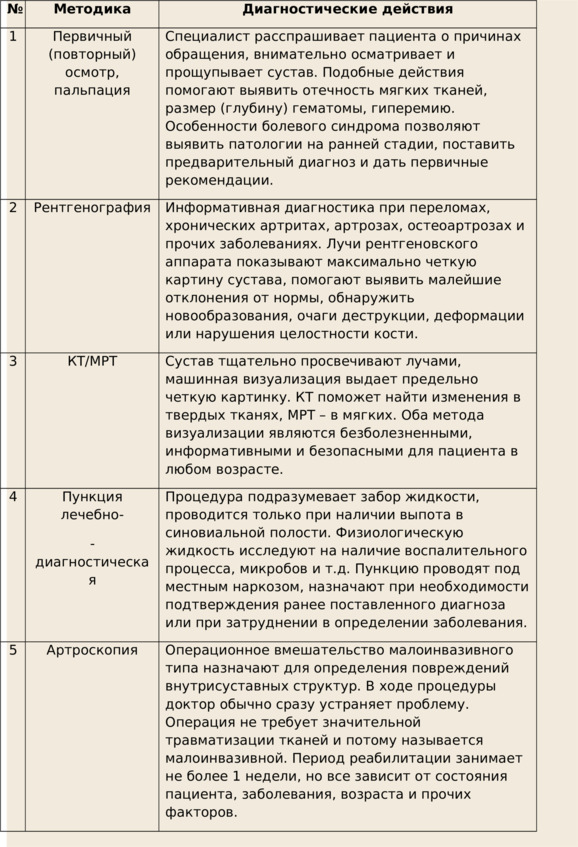 Лечение начинается с диагностики заболевания. Проблемой суставов занимается ортопед, хирург или травматолог. Для выявления причин, последствий и формы болезни применяют ряд методик: