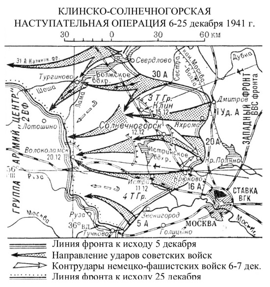 Все происшедшее здесь в конце ноября – начале декабря 1941 г. укладывается военными историками в рамки двух операций, имеющих одинаковое название (Клинско-Солнечногор-ская) и отличающихся тем, что одна из них оборонительная, а другая – наступательная.