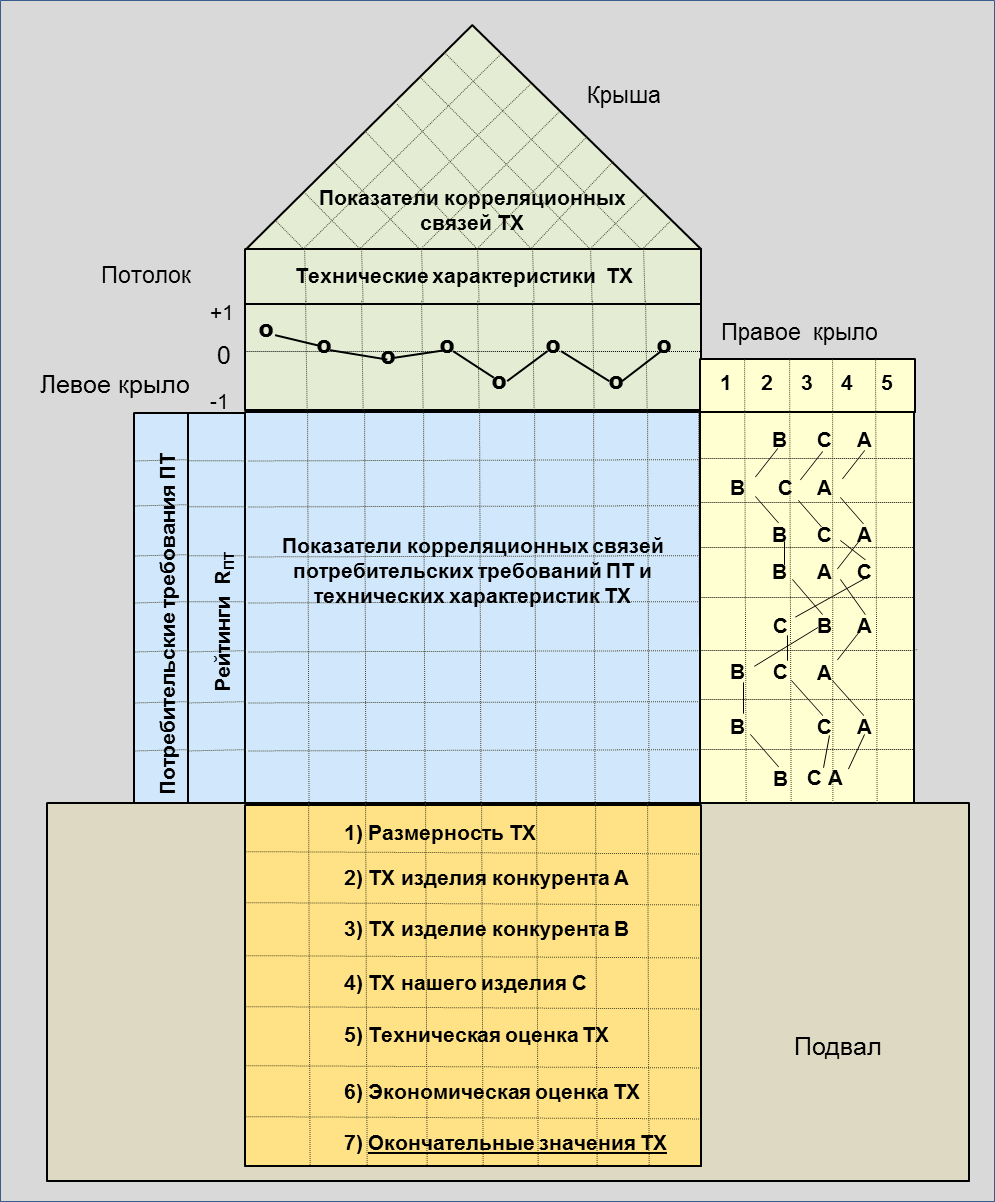Рис. 1–3. Диаграмма «Дом качества», представляющая формирование технических характеристик будущего изделия