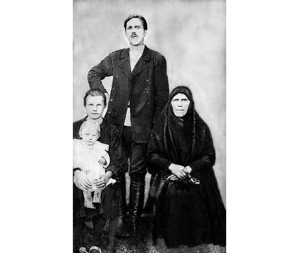 Моя родная прабабушка Копейкина (дев. Иванова) Августа Сидоровна (1865 г.р.) из богатой семьи, глубоко верующая, была при церкви. Сын её, Копейкин Иван Петрович, воевал с казаками и белогвардейцами. Дважды был ранен, шашками изрезан, но выжил, а в 1940 г. умер от туберкулёза. На фото на руках у жены дочь, которая умерла в младенчестве. Позже у них родился сын Пётр.