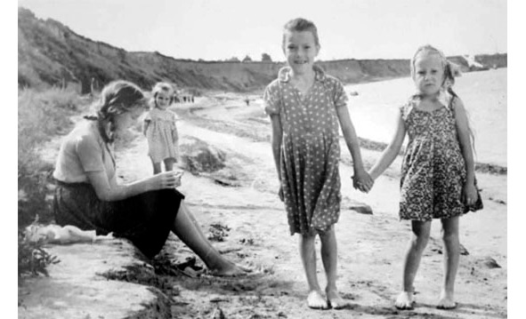 Он принимал участие в освобождении Будапешта, награжден орденом Красной Звезды, медалями, – делится Татьяна. – А на следующем фото мы на берегу Иртыша (я справа). Моя старшая сестра Алла Казачинина (ныне Сангалова) присматривает за нами. Аля старшеклассница, она очень умная, поэтому даже летом не расстается с книгой. В тот раз она читала, как она мне сказала, «Таис Афинскую» Ефремова.