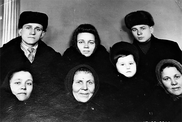 В центре моя бабушка Горохова (Петухова, Колесникова) Наталья Михайловна в окружении своих детей и племянников. Нижний ряд (слева направо): Горохова А. Е., бабушка, Колесникова Т. С., Колесникова М. С. Верхний ряд: Горохов А. Е., Горохова Т. Е., Колесников Н. С. Омск, 1958 г.
