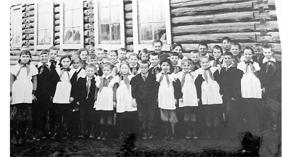 Когда я училась в третьем классе, нас приняли в пионеры! Учительницу звали Александра Самойловна. Тогда мы чувствовали, конечно, гордость: нам казалось, что мы уже стали взрослыми! Была весна, на улице прохладно, но светило солнышко. Мы все в резиновых сапогах, потому что тротуаров тогда не было, стояла грязь.