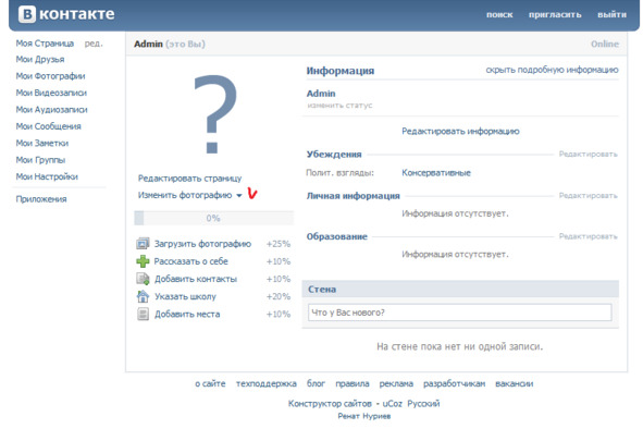 Для этого мы заходим в раздел Моя страница или Редактировать страницу.