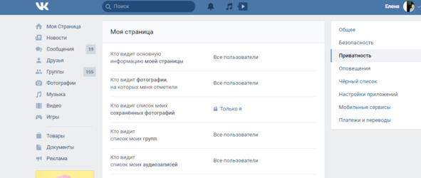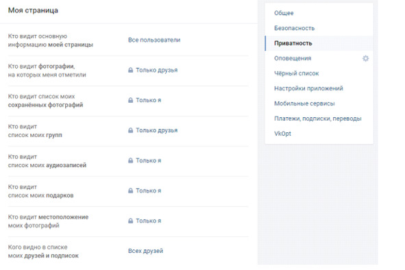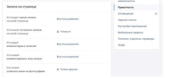 Вы можете изменить правила доступа вообще или к отдельным составным вашего аккаунта. Таким как фото альбом или видео запись.