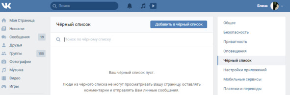 Здесь Вы можете блокировать всех не желательных Вам пользователей.