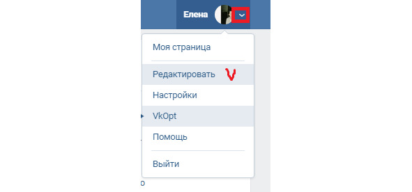 Если Вам нужно что-то изменить на своей страничке, то кликаем на стрелочку и выбираем Редактировать.