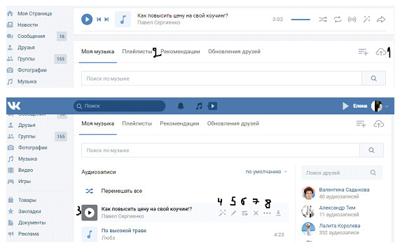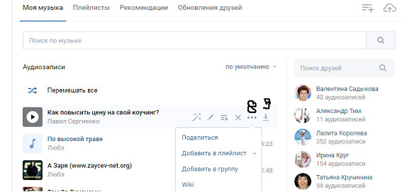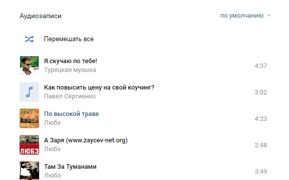 Мы заходим во вкладку Музыка. И видим список аудио записей.