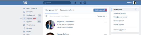 Для того, чтобы найти своего друга или знакомого, мы заходим во вкладку Друзья. И нажимаем кнопку Найти друзей.