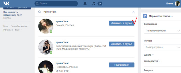 Если Вы нашли своего знакомого, то кликаем по кнопочке Добавить в друзья.