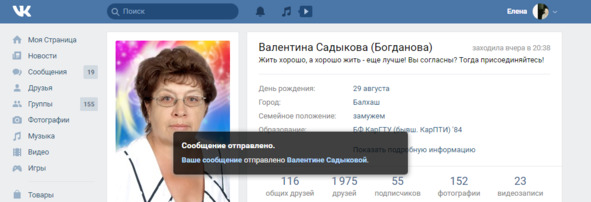 Для того, чтобы написать сообщение, мы нажимаем на вкладку Написать сообщение.