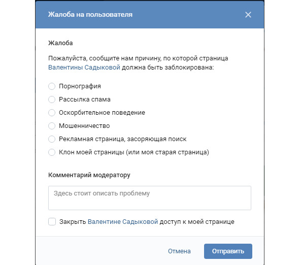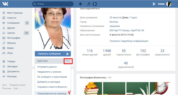 Мы заходим на его страничку, нажимаем на три точки и выбираем Пожаловаться на страницу.