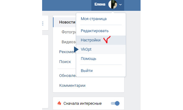 Теперь давайте настроим свой профиль. Около аватарки кликаем вот на эту стрелочку и выбираем Настройки.