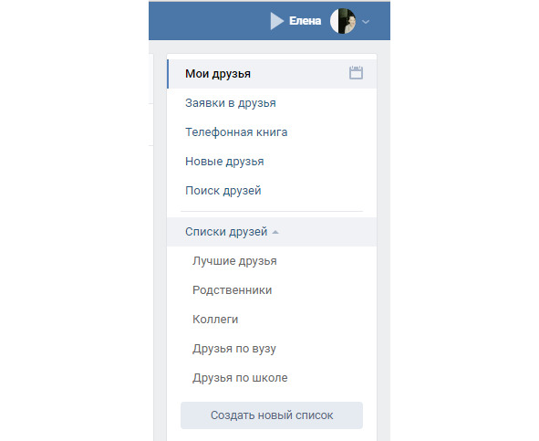 И нажимаем Списки друзей. Здесь мы увидим все созданные списки. Если у Вас их еще нет, то нажимаем Создать новый список.