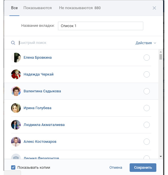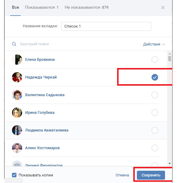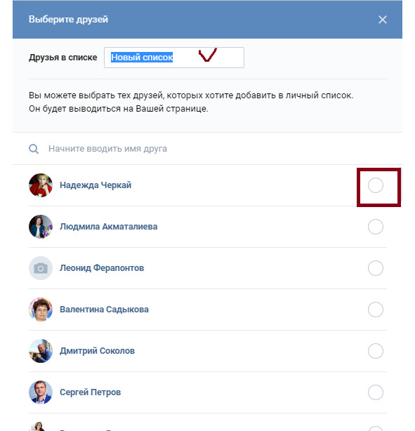 Даем название и отмечаем галочкой кого хотите в него добавить.