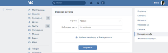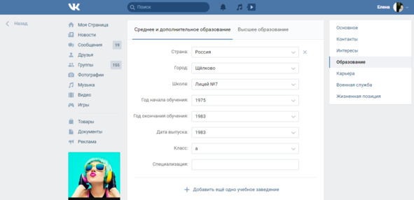 Заходим во вкладку Образование. Здесь Вы указываете учебные заведения где Вы учитесь или учились.