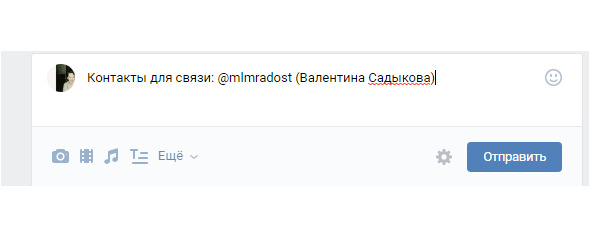 1.Если ее сделать в разделе Ответы, то на страничке отмеченного, появится уведомление, что был упомянут в статье.
