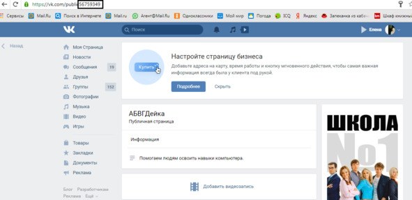 Мы должны зайти на свою главную страницу. В левом меню нажимаем вкладку Группы и Создать сообщество.