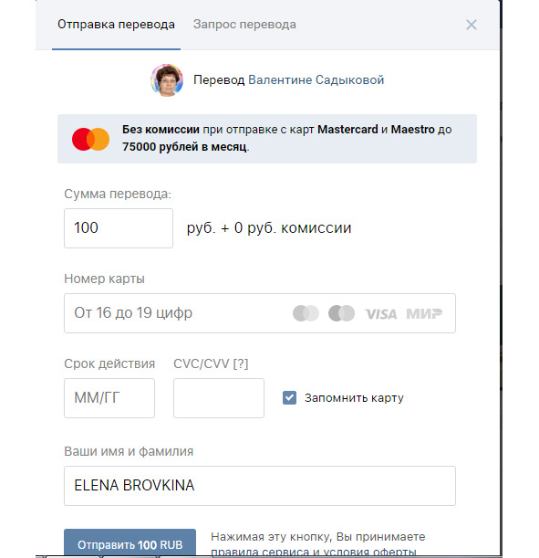 Вводим сумму, минимум 100 рублей. И нажимаем отправить.