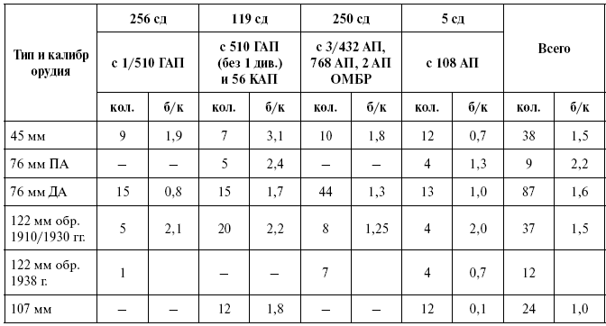 Данные по боекомплекту, представленные в таблице 2, не являлись окончательными, так как снаряды отправлялись в части и 3-го декабря (около 5000 штук), и в последующие дни.