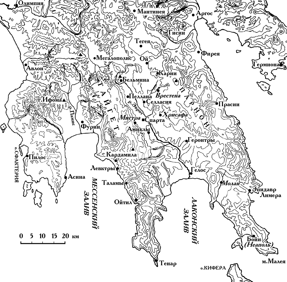 1) СтранаС конца VIII в. до Р.Х., когда в результате первой Мессенской войны Мессения была присоединена к Лаконике, две эти области составляли единое государство под главенством Спарты.