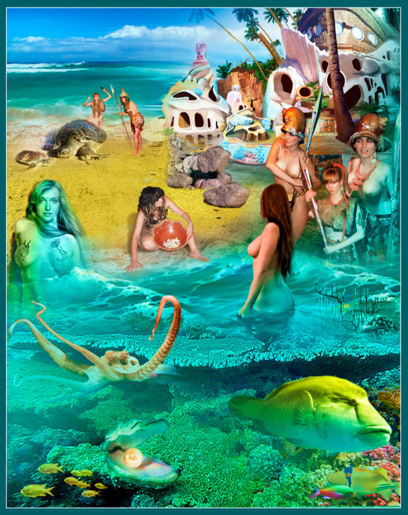 Селились они у пресных источников и у дельт небольших рек близ коралловых рифов. Их жилища и целые поселения зачастую находились непосредственно на руинах исчезнувших иных загадочных працивилизаций планеты. Позже люди высекут в камне свою историю. И в гранитных барельефах и скульптурных формах океанид появятся человеческие лики, образы и формы. Одежда атлантов-островитян была яркой, пёстрой и соответствовала палитре океанских коралловых рифов. Также присутствовала разнообразная бижутерия, выполненная из различных обитателей моря с символикой океанид и богинь. Жемчуга оберегали от неприятности и плохого глаза (они считались зеницами океана). Их носили не только женщины, но и воины-скибы. Жемчужинами, культово украшались шлемы.