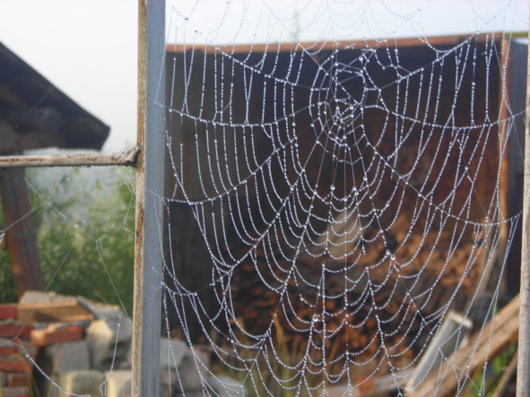 Этот снимок с капельками утренней росы, нанизанных на ниточки паутины, разместил у себя на рабочем столе компьютера. И получилось так: писал этот текст к снимку, а буквы попадали, словно в паутину – ощущение и зрелище получилось необычным.